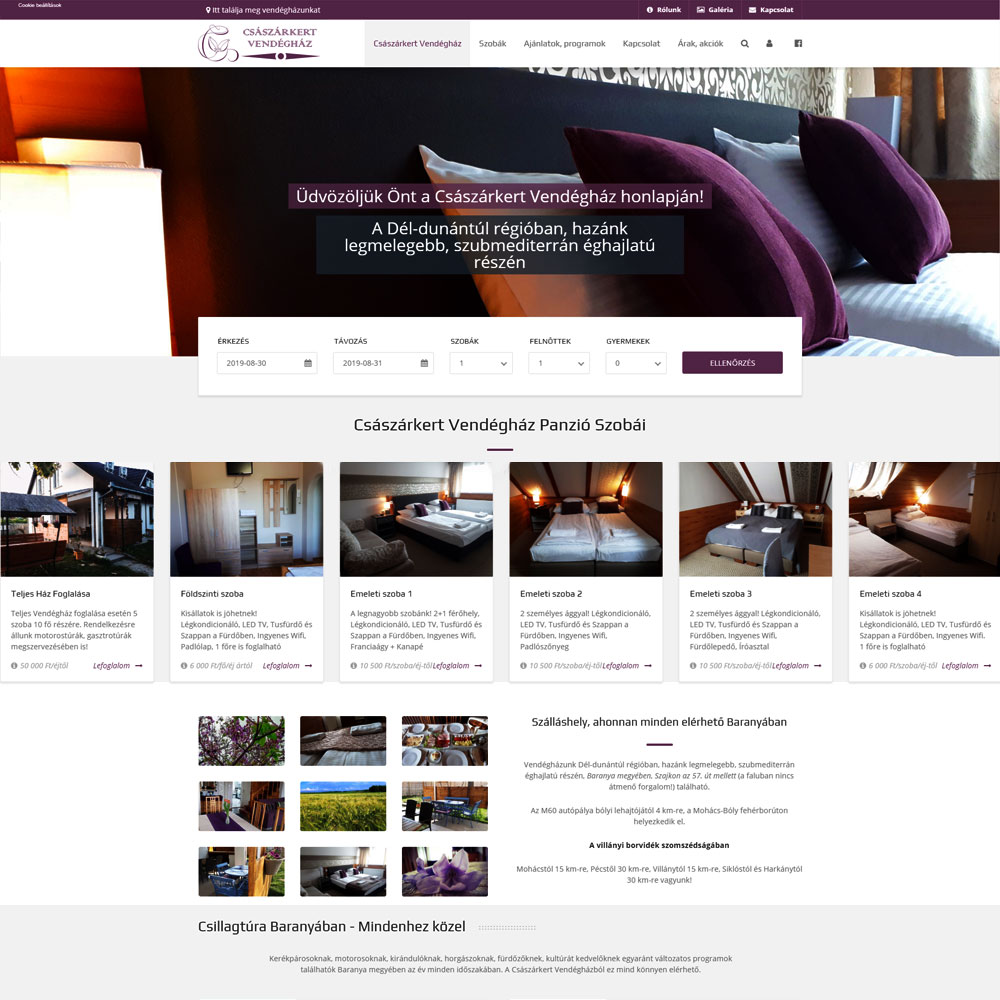 Online foglalási rendszerrel fejlesztett weblap, Baranyai szálláshely számára.